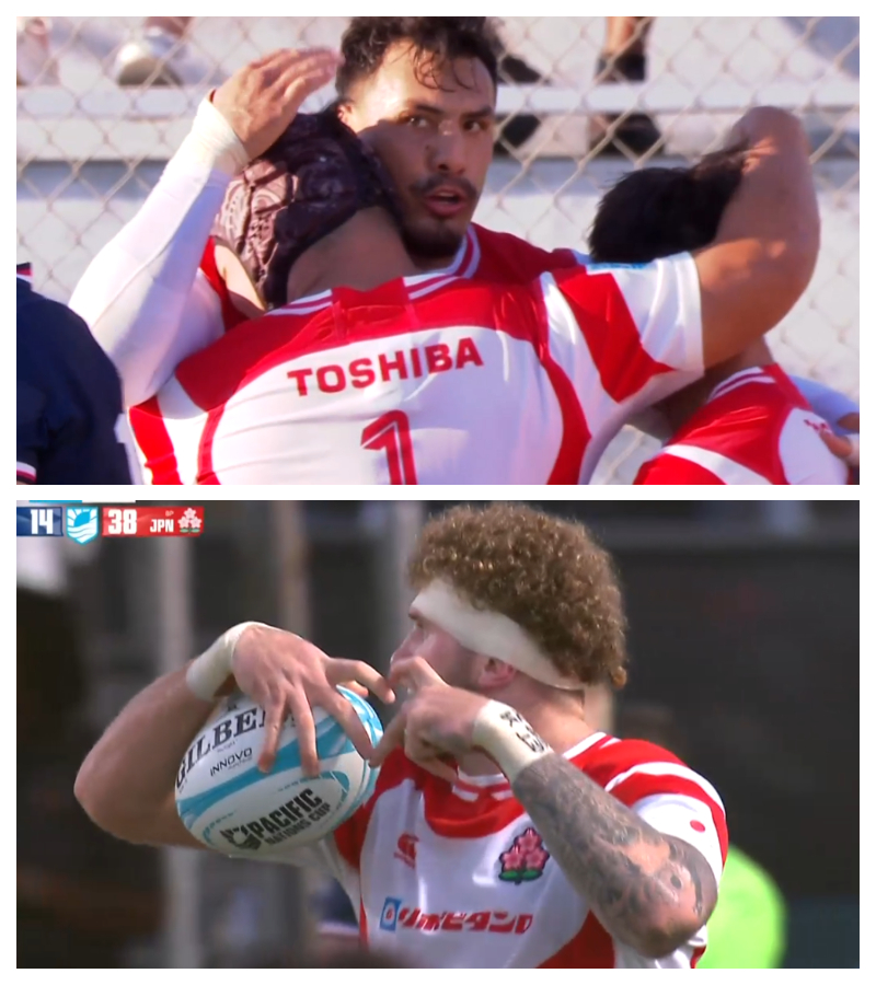 12番ウィリ・ハラホロ、13番フェトゥリ・パエア:2人ともパワフルなキャリーで中盤を割ってくる。オフロードでつながれると一気にゲインされる。