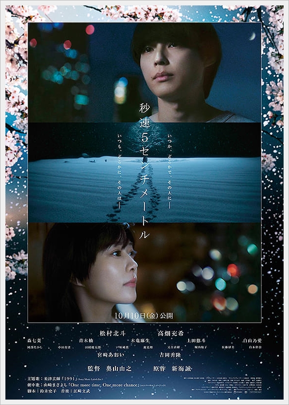 キャストの演技も含め、現実を生きる人間たちのぎこちなさや迷いが、アニメ以上にリアルに描かれていた。表情・間・声の抑揚など、小さな仕草の積み重ねが、「あの時こう思った」「あの言葉を言えなかった」という主人公の遠野貴樹の心の揺らぎを、観客にも共振させる。