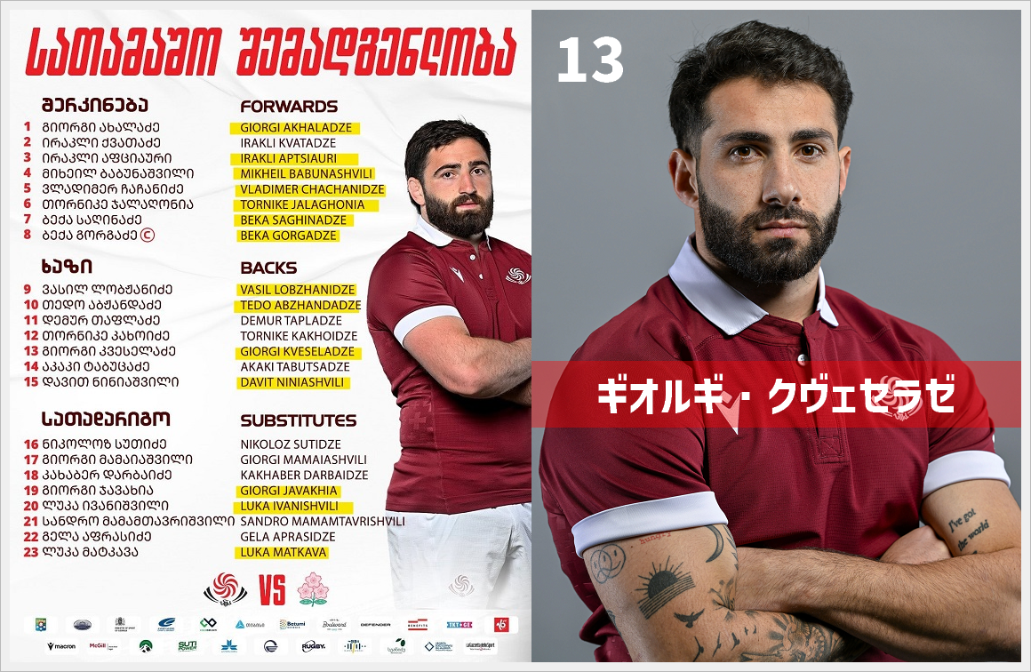 日本戦メンバーが発表になりました。ジョージアについては去年のユアテック仙台の試合と、ここ2試合のカナダ戦とアメリカ戦くらいしかちゃんと観てないので、あまり参考にはならないかもしれませんが。。。