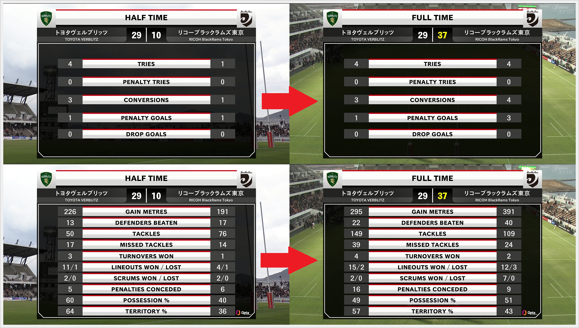 チームとしては、課題が山積みの試合でしたね。ラインアウト壊滅。モール押されまくり。ペナルティ多すぎ。遅いラックへのサポート故の被ターンオーバー数回。。。これだけ書くと、どう見ても負けチームの感想ですが、それに何倍も輪をかけて、日野のディフェンスが酷すぎましたので、何とか勝利を掴んだという感じですかね。