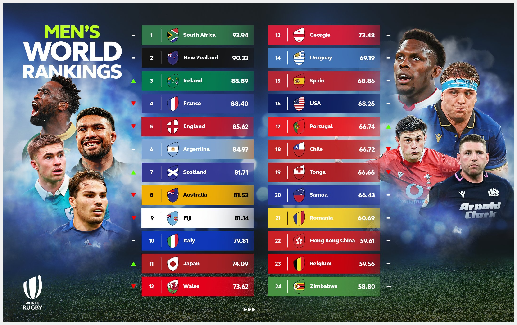ウェールズがシックスネーションズ3連敗中なので、日本も12位から11位に