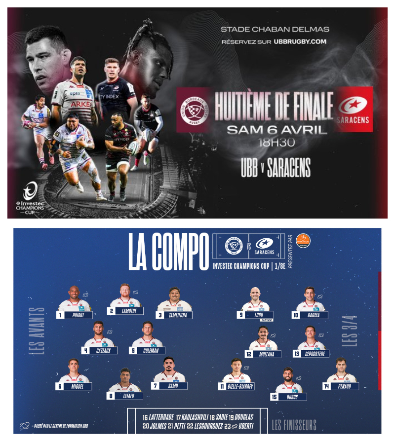ボルドーは準々決勝でハーレクインズ(イングランド)と対戦する