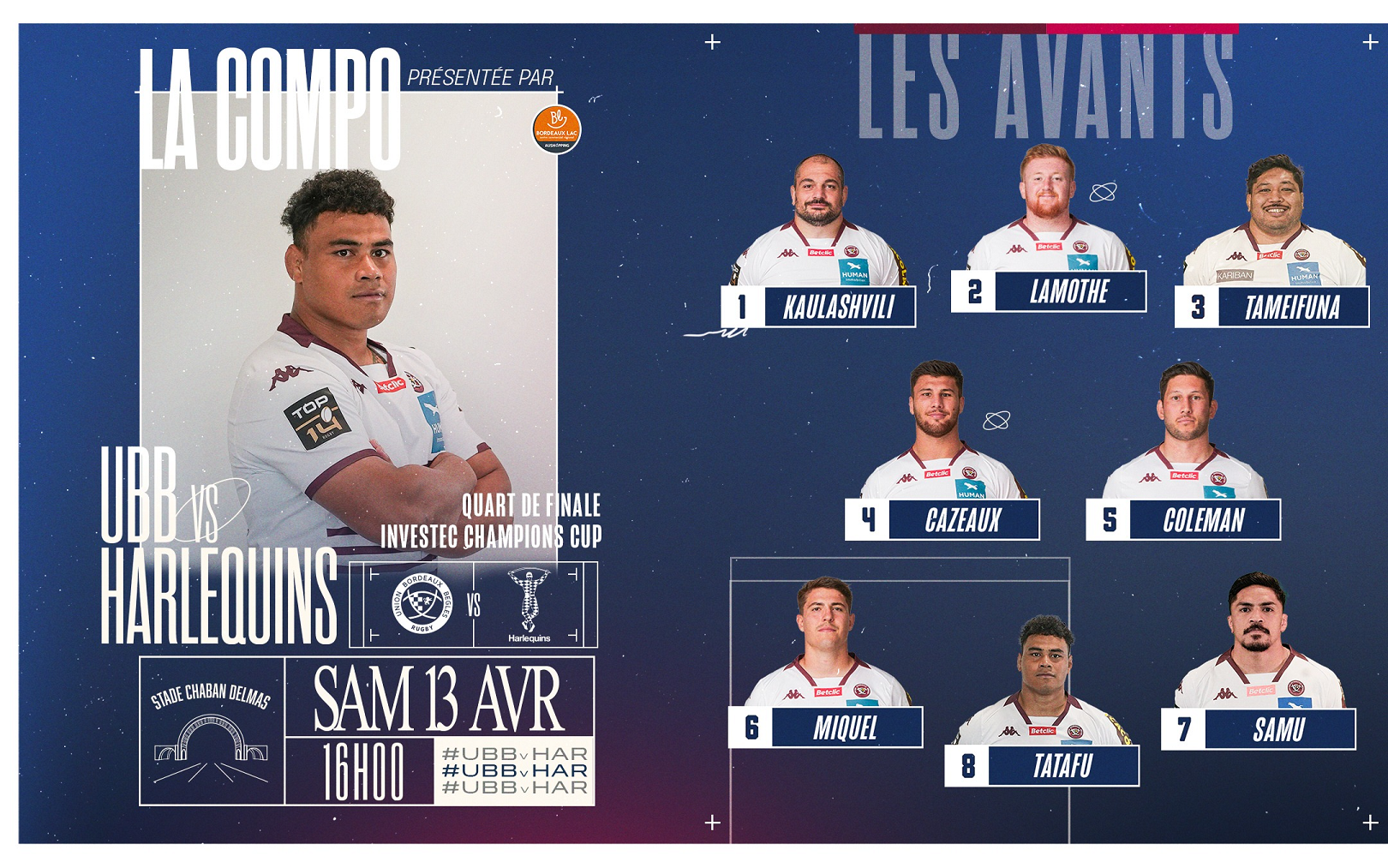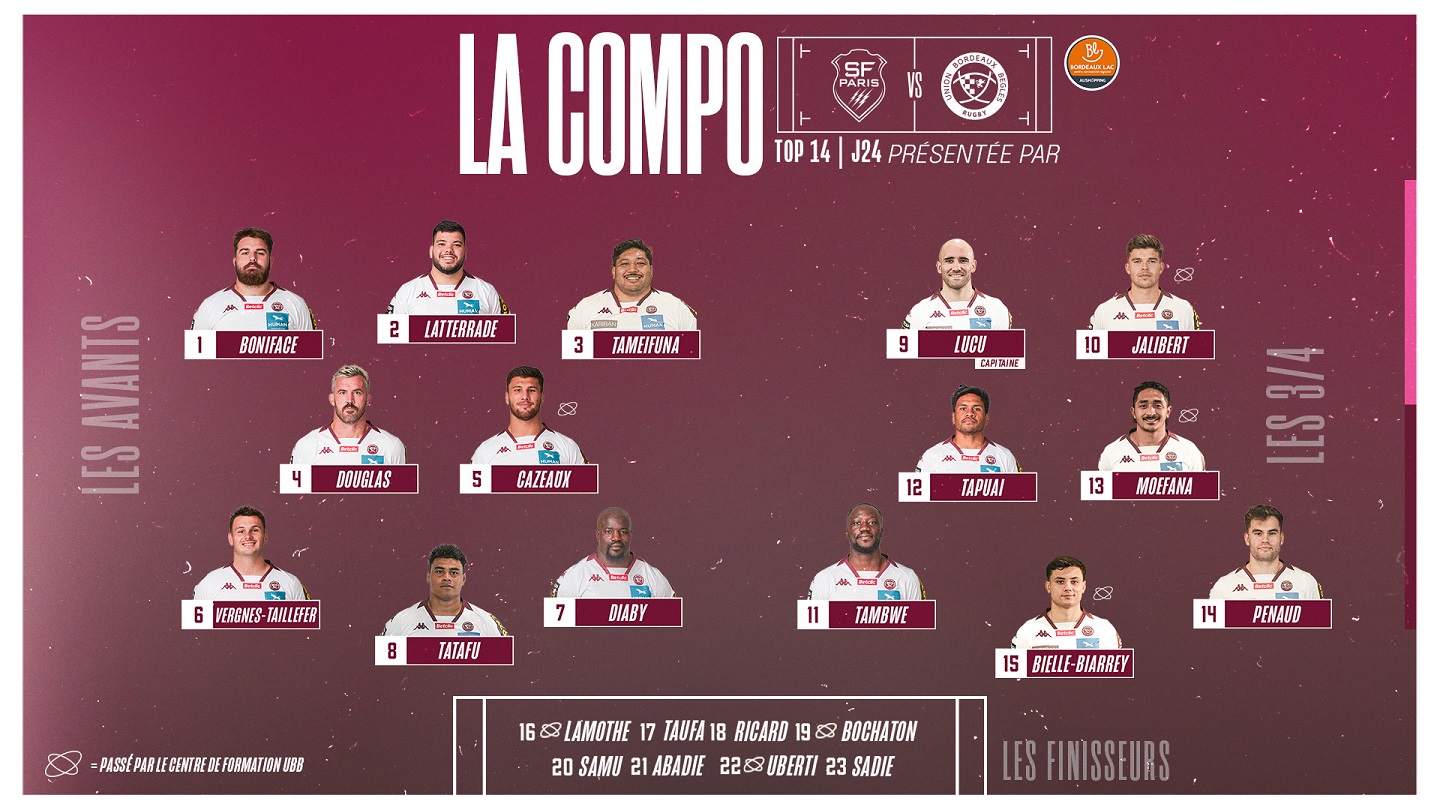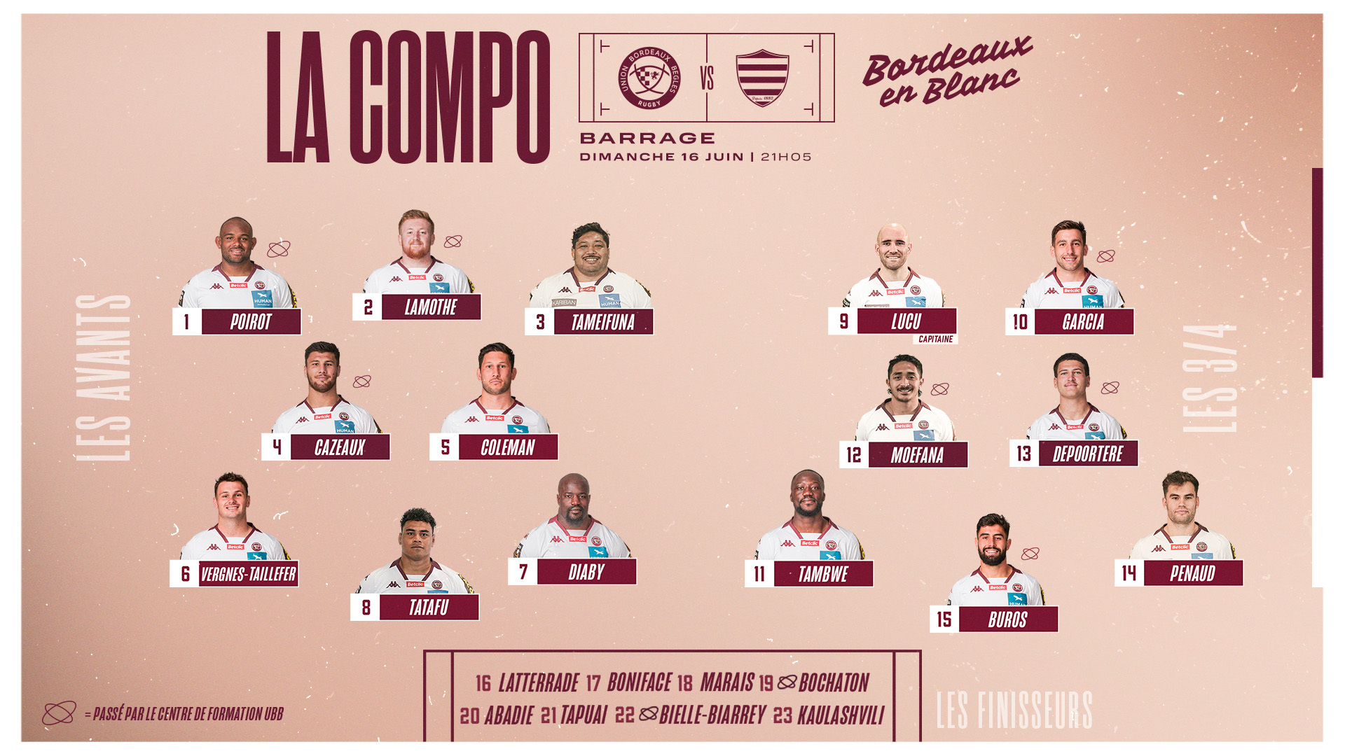 ボルドーは準決勝欠場していたPRベン・タメイフナとSOマチュー・ジャリベールが戻りベストメンバー