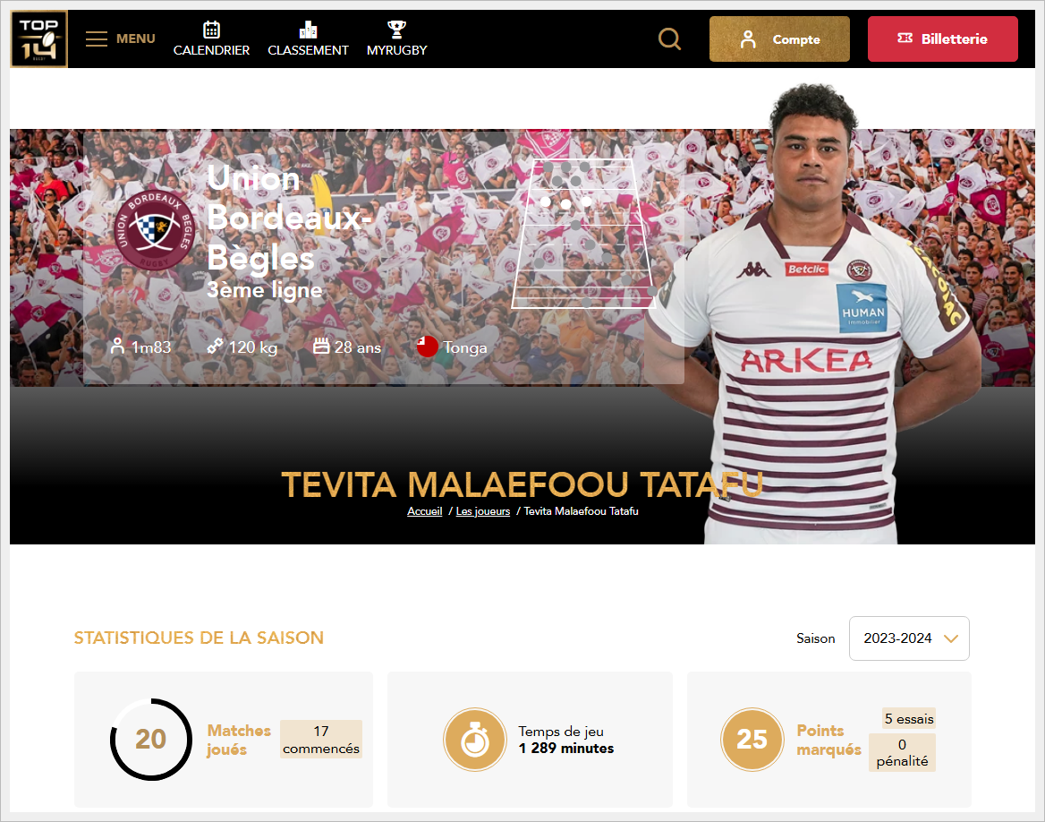1年の内、約10か月がシーズンのTOP14。本当に毎週楽しませてもらった。タタフを快く迎えてくれたボルドーのスタッフ、メンバー、ファン。そしてタタフの怪我をしない身体を作ってくれた、パフォーマンス・ディレクターのチボー・ジルーさんにも感謝しかない。