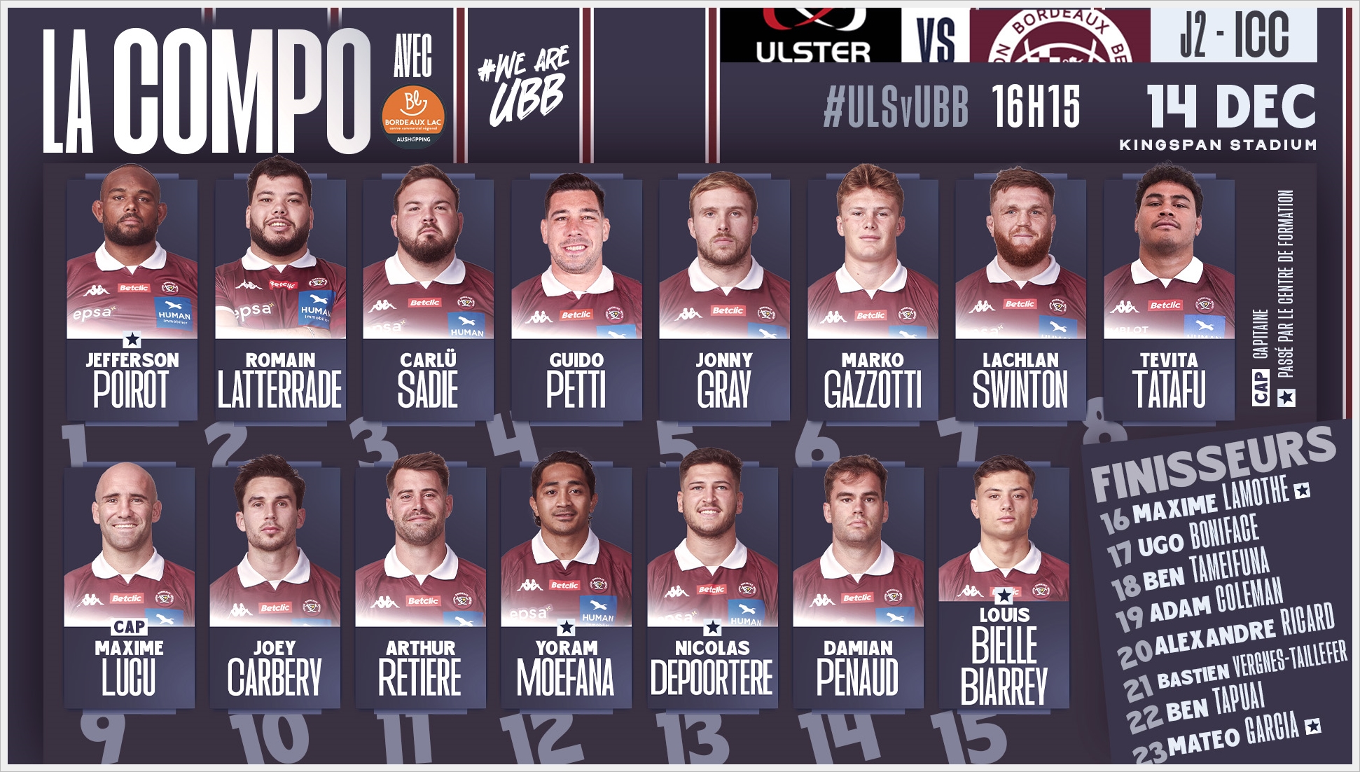 ただハーフタイム中のヤニック・ブリュ監督の指示が良かったのか、後半は完全にボルドーのペース。WTBダミアン・プノー、ルイ・ビエル=ビアレらのトライで突き放し、守ってもアルスターを無得点に抑えた