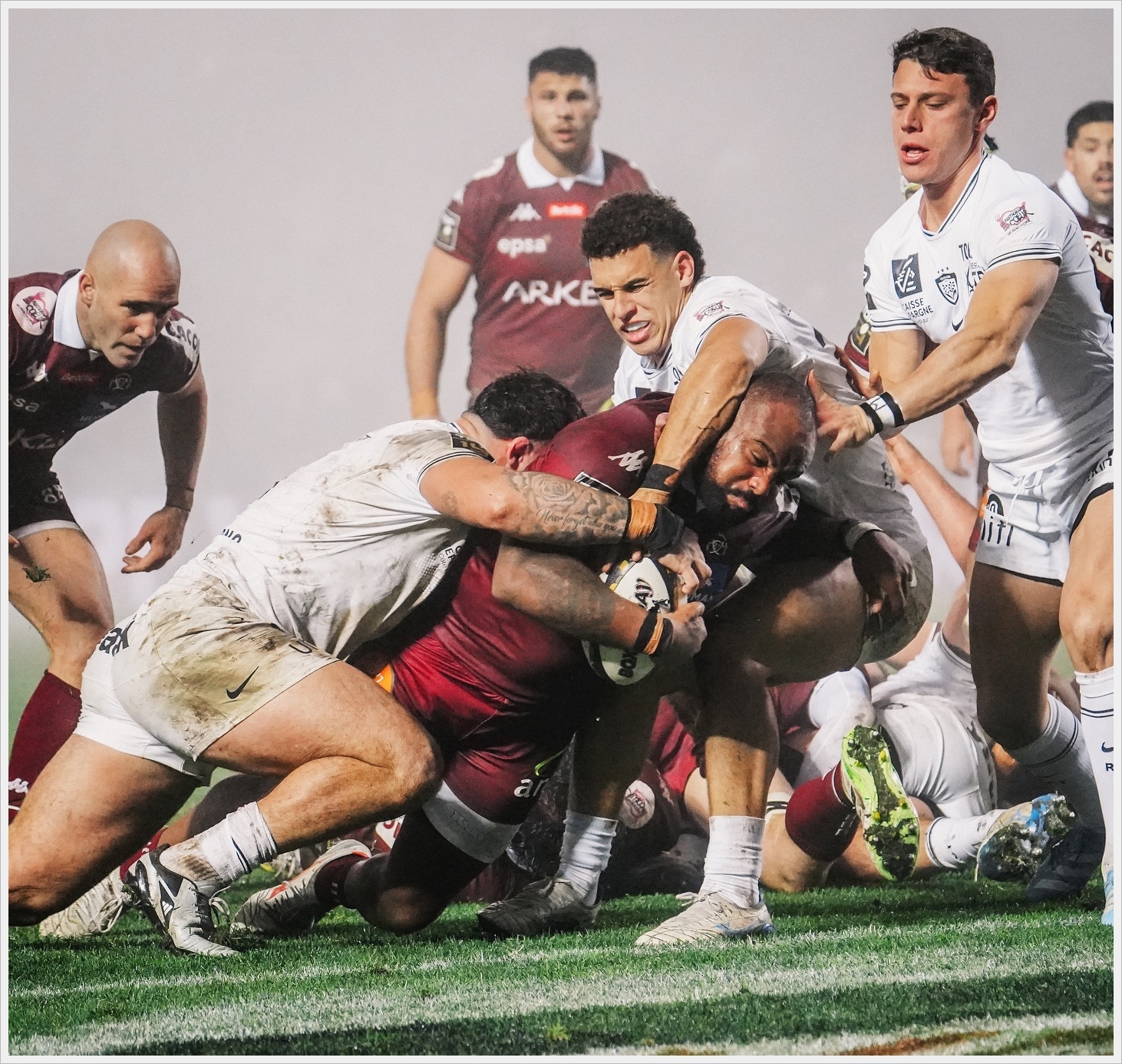 霧にけむるスタッド・シャバン=デルマス。強豪トゥーロンを相手のシーソーゲーム。ボルドーは69分、PRジェファーソン・ポワロのトライで逆転。残り時間も守り切った。