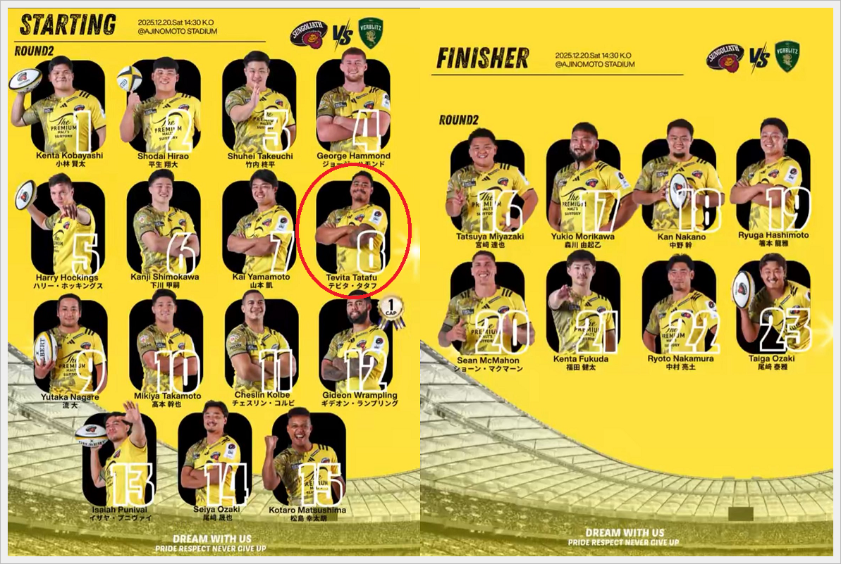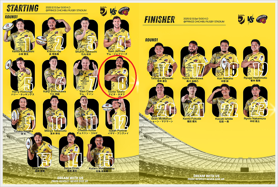 ・CTBプニヴァイ:中野不在による一時的なインサイドCTBかは不明だが、キャリーもディフェンスもキックも良いプニヴァイの12番は楽しみ。そのラグビーIQの高さでSO髙本の負担を減らして欲しいです。